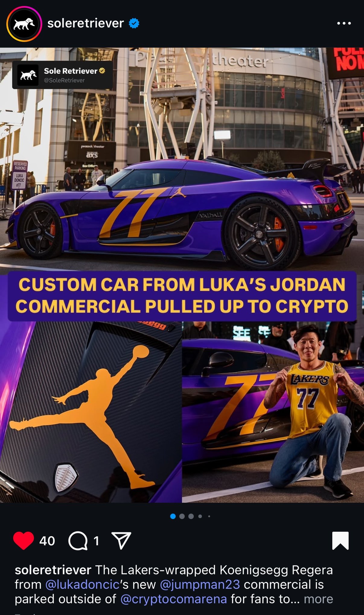 We brought the film to life by pulling up to Crypto.com Arena with the custom-wrapped Regera, giving Lakers fans an immersive in-person experience on game night. Included FREE Parking by Luka.